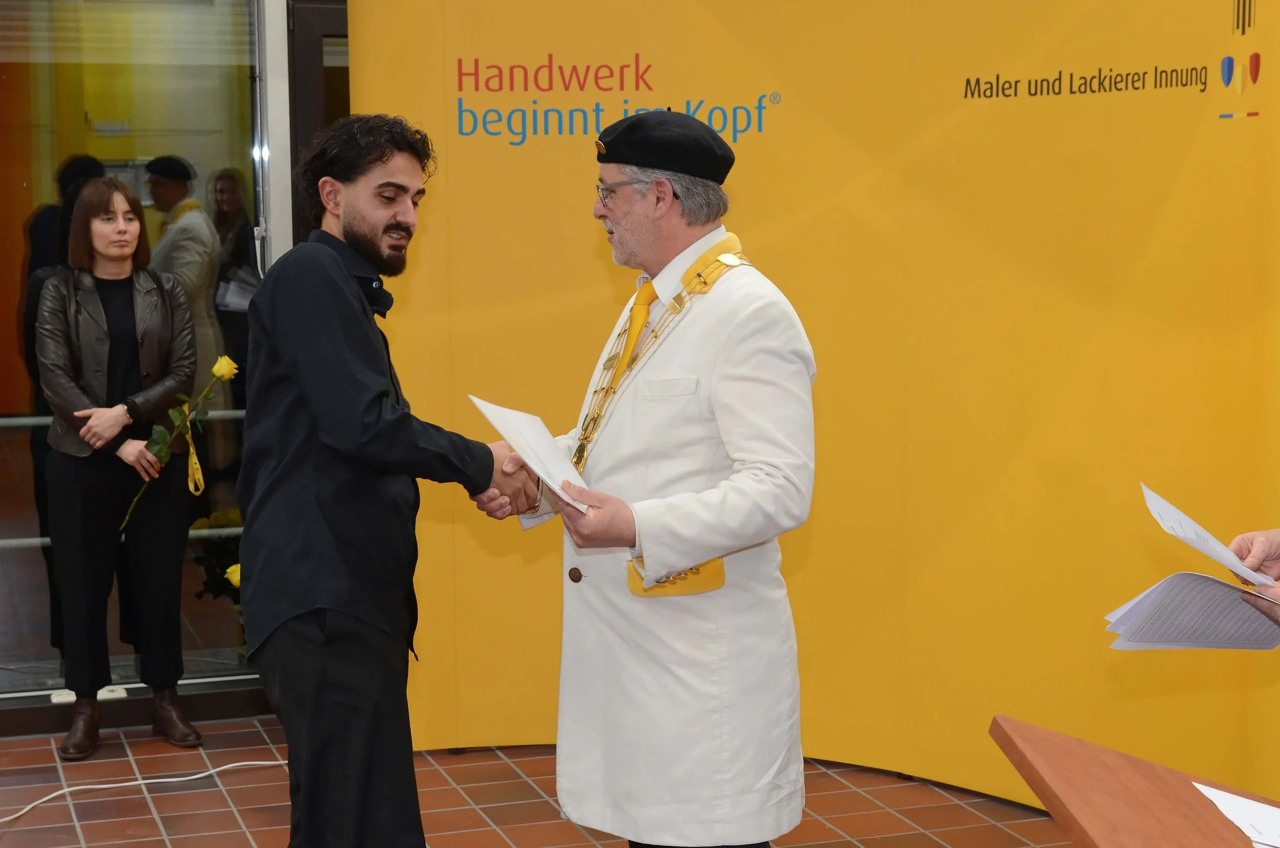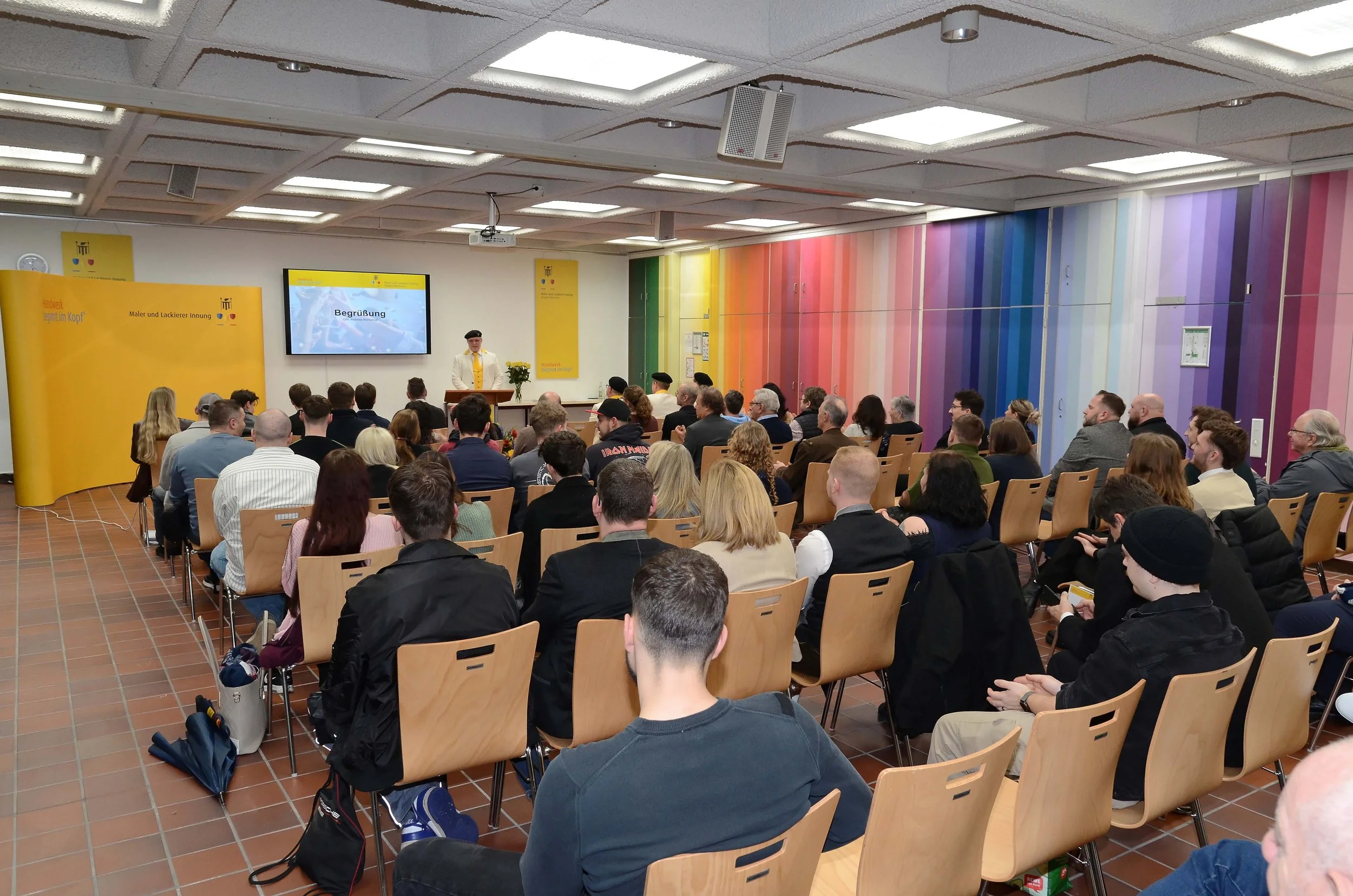 Die Feierlichkeiten fanden in einem sehr schönen und würdigen Rahmen statt. Eröffnet wurde die Veranstaltung von Obermeister Andreas Romanow. Im Anschluss richtete OStDin Miriam Maier, Schulleiterin der Münchner Farben Schule, ihre Glückwünsche an die Absolventinnen und Absolventen. Ebenfalls anwesend waren Frau Traub und Herr Hoven, die die Berufsschulbesten besonders auszeichneten.